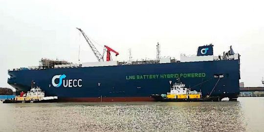 El astillero Jiangnan de Shanghái ha acogido la botadura del primero de los tres 'Pure Car & Truck Carriers' con propulsión híbrida de GNL y baterías que fueron encargados por la naviera UECC.