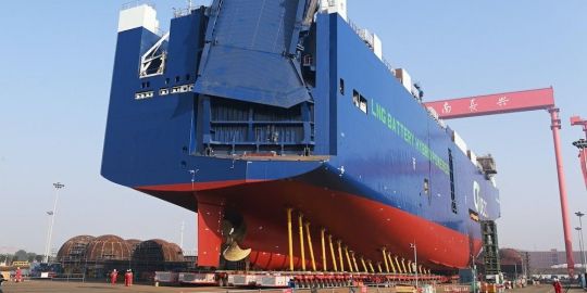 UECC ha botado en el astillero chino Jiangnan su tercer portacoches de propulsión híbrida a GNL y baterías que comenzará a operar en puertos españoles durante el tercer trimestre de este 2022.