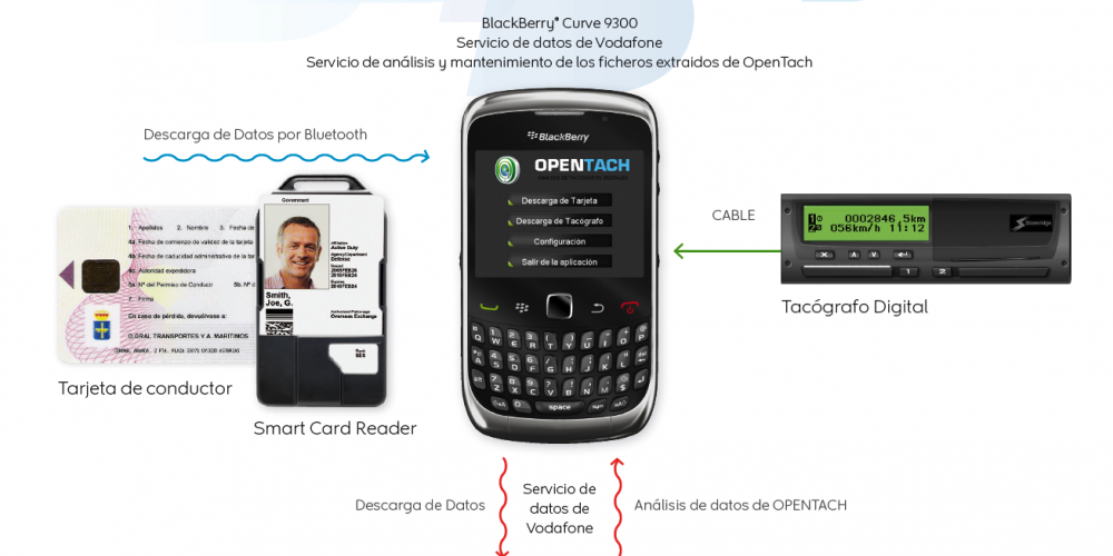 Como mejor Proyecto dirigido a pymes, microempresas y autónomos destaca la iniciativa propuesta por OpenServices Consultoría en Transportes. Se trata de OpenTach, una aplicación que facilita a los profesionales del transporte de mercancías la descarga y transmisión de los datos del tacógrafo digital y de su tarjeta de conductor a un smartphone BlackBerry, pudiendo posteriormente ser gestionados, analizados y almacenados como servicio adicional del proveedor o bien por el propio usuario.