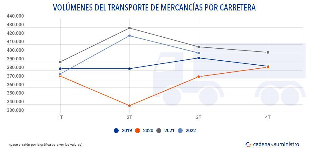 Entre julio y septiembre de 2022, en España se han movido por carretera un total de 400.134.070 toneladas de mercancías, registro que supone un descenso de un 1,73% con respecto al mismo período de 2021.