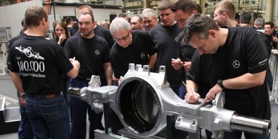 La planta alemana de Kassel de Mercedes-Benz ha fabricado esta semana el eje IPS número 100.000, un nuevo hito que consolida a la factoría como centro de referencia a nivel mundial en lo que a producción de ejes de camiones se refiere, menos de cuatro años después de que se iniciará la producción el pasado 2012.