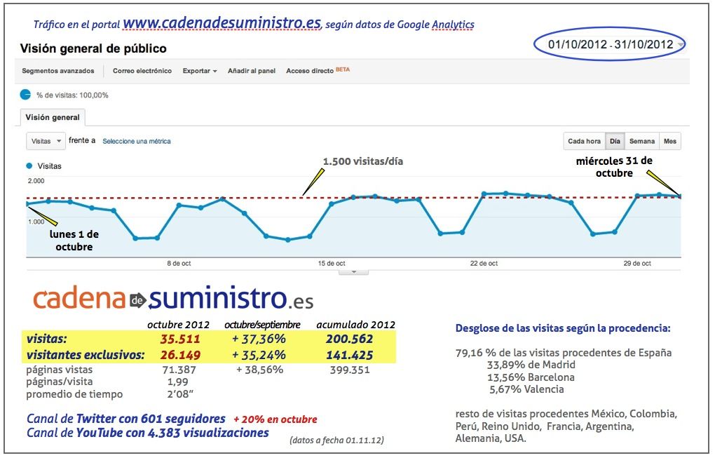 El portal de información para los sectores de la logística y el transporte en todas sus especialidades, con una media de 1.500 visitas diarias, supera las 35.000 visitas en octubre, dejando atrás las 22.000 del pasado mes de mayo.