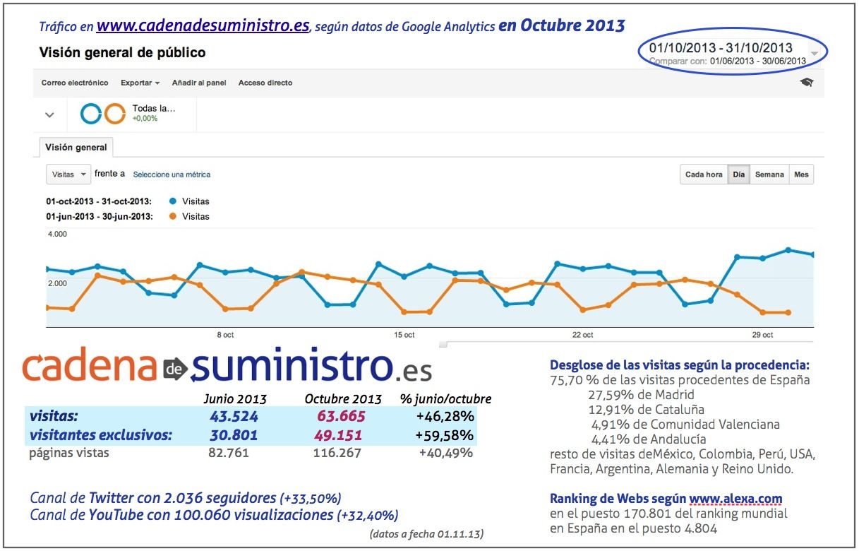 Queremos compartir con nuestros lectores lo que gracias a ellos, hemos conseguido en estos 31 meses desde que el 7 de abril de 2011 comenzó su andadura cadenadesuministro.es como medio de comunicación on-line para el sector del transporte y la logística.