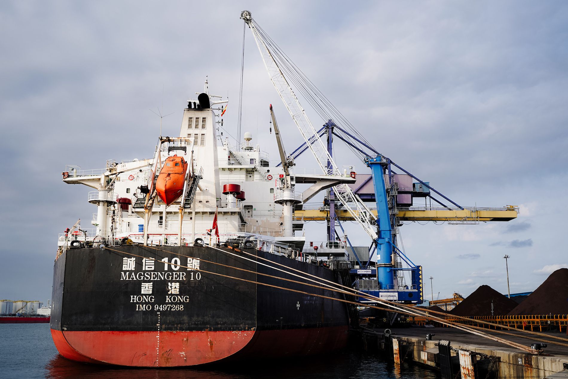 El puerto de Tarragona gestiona la descarga de 49 tubos de acero con un peso total de más de 2.000 toneladas
