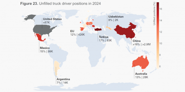 El último estudio de la Iru que analiza la escasez global de conductores profesionales de camión calcula que faltan 3,6 millones de chóferes en los 36 países analizados.