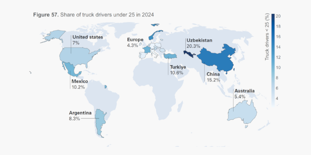 Además, en los próximos cinco años, se prevé que 3,4 millones de conductores de camión se jubilen en los países analizados. En España, junto con Alemania, Italia, Eslovaquia y Australia, se percibe una particularmente acuciante brecha estructural entre chóferes jóvenes y mayores.