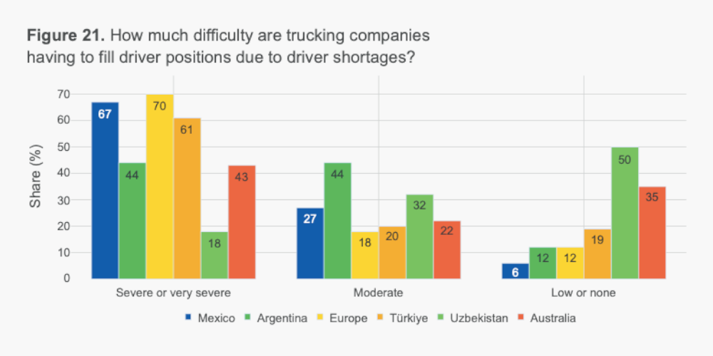 Además, los sueldos medios de los transportistas son entre un 30% y un 135% más altos que el coste de vida básico en todas las regiones analizadas, de lo que Astic deduce que no existe correlación entre el nivel salarial y la escasez de conductores.
