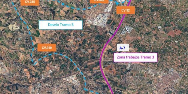 En este sentido, en el km 322,500 de la A-7 se desviará el tráfico por el enlace con la CV-310, en dirección Bétera. De igual manera, se circulará por la carretera CV-310 en esa dirección y después Náquera, hasta la intersección tipo glorieta con la carretera CV-315 a la altura de Náquera. A partir de este punto, se reconducirá el tráfico por la CV-315 en dirección Massamagrell y la A-7, hasta el enlace con la A-7 en su km 341.