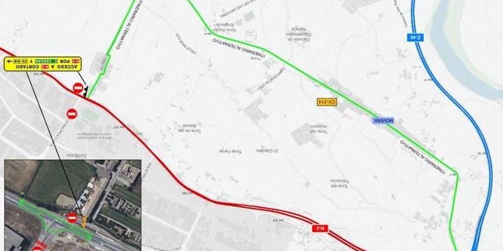 El itinerario alternativo para el movimiento restringido quedará señalizado por la carretera provincial CV-314.