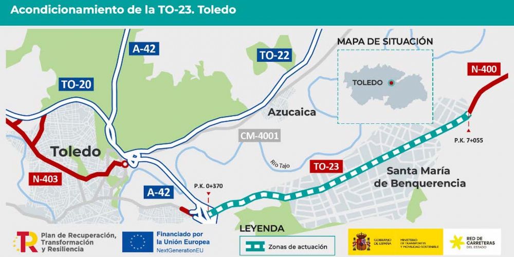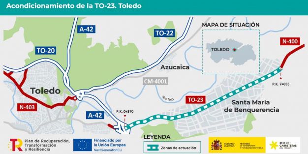 El presupuesto de las obras es de 3,6 millones de euros, que se destinan a mejorar las condiciones de seguridad de los usuarios más vulnerables como peatones y ciclistas, ya que separa a estos últimos de la carretera y permite a través de la nueva pasarela cruzar la carretera TO-23 a distinto nivel evitando los pasos peatonales existentes.