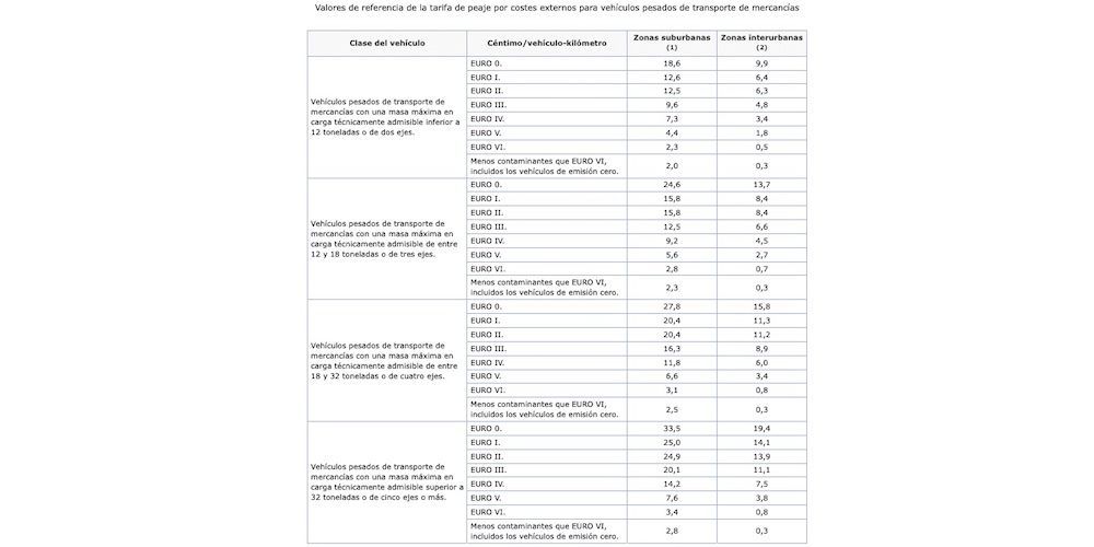 Sin embargo, el Real Decreto indica también que, a partir del 25 de marzo de 2026, es decir dentro de un año, para la determinación de los correspondientes peajes, se aplicará a los vehículos pesados una tarifa de peaje por costes externos de la contaminación atmosférica provocada por el tráfico.
