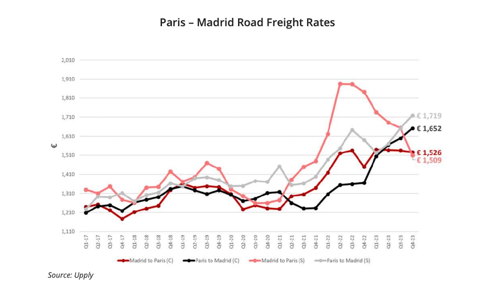 Durante el último trimestre de 2023 se ha registrado una evolución dispar en los precios de los servicios de transporte de mercancías por carretera en los mercados europeos.