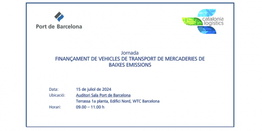 El próximo lunes 15 de julio, se celebrará en el World Trade Center de Barcelona una jornada sobre la 'Financiación de vehículos de transporte de mercancías de bajas emisiones', organizada por el Grupo de Trabajo de Medio Ambiente de la Comunidad Portuaria de Barcelona junto con el Clúster Catalonia Logistics.