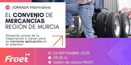 El próximo martes 23 de septiembre, Froet organiza una jornada informativa en la que se pretende analizar en profundidad el convenio colectivo de transporte de mercancías en Murcia, su situación actual y las claves para su correcta aplicación en tu empresa.