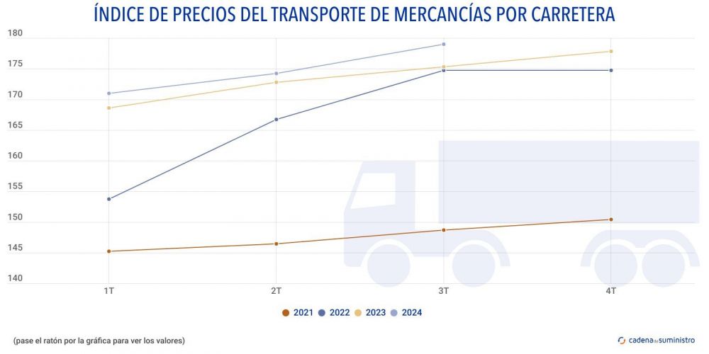 Los precios de los servicios de transporte de mercancías por carretera han acelerado su evolución al alza entre julio y septiembre de 2024.