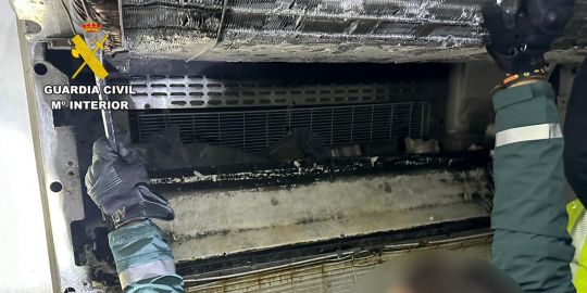 Tras su apertura se constató que no había ningún motor de refrigeración, sino una cavidad en cuyo interior había multitud de bolsas transparentes herméticas que contenían tabletas de hachís. Todas ellas estaban impregnadas con algún líquido, posiblemente para evitar desprender el olor que detectan los perros especializados en búsqueda de sustancias estupefacientes.