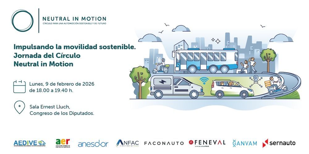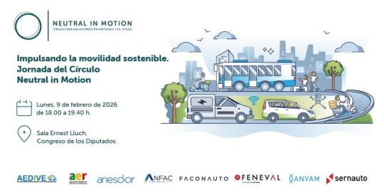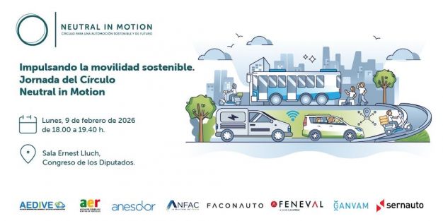 El Círculo Neutral in Motion, que engloba a Aedive, AER, Anesdor, Anfac, Faconauto, Feneval, Ganvam y Sernauto, organiza el día 9 de febrero una jornada bajo el título de "Impulsando la movilidad sostenible".