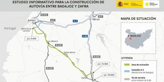 Así mismo, para la conexión de la autovía entre Badajoz y Zafra con la A-66 se estima una longitud aproximada de 71 kilómetros.