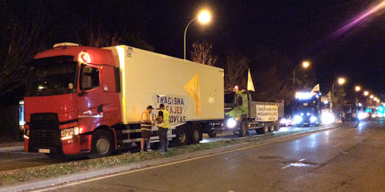 Durante aproximadamente una hora y media, más de un centenar de vehículos pesados circularon por algunas de las principales calles de la capital vasca para reclamar acción al Gobierno foral y respeto para el sector.