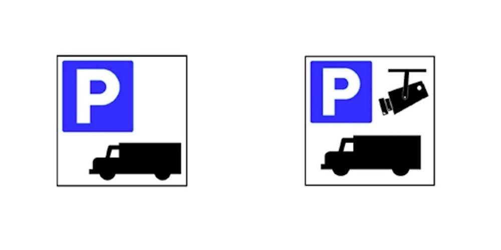 En particular, y por lo que respecta al transporte por carretera, Transportes ha desarrollado señales informativas cuadradas para indicar zonas de descanso y zonas de estacionamiento seguro y protegido para camione, de formato cuadrado y fondo blanco en el que destaca la señal de aparcamiento y un pictograma de un vehículo pesado, que en el caso de los vigilados también incorpora el dibujo de una cámara.