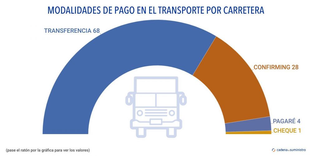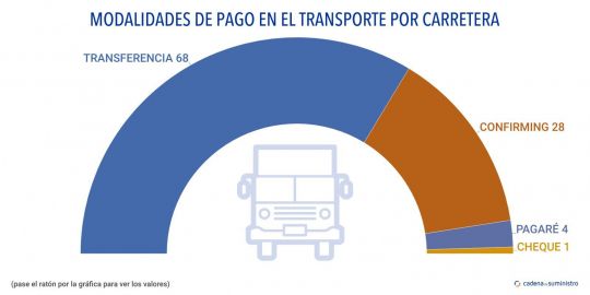 En cuanto a los medios de pago utilizados más habitualmente para el pago de los servicios de transporte, continúan siendo por este orden, la transferencia (68%), seguido del confirming (28%), el pagaré (4%) y el cheque (<1%).