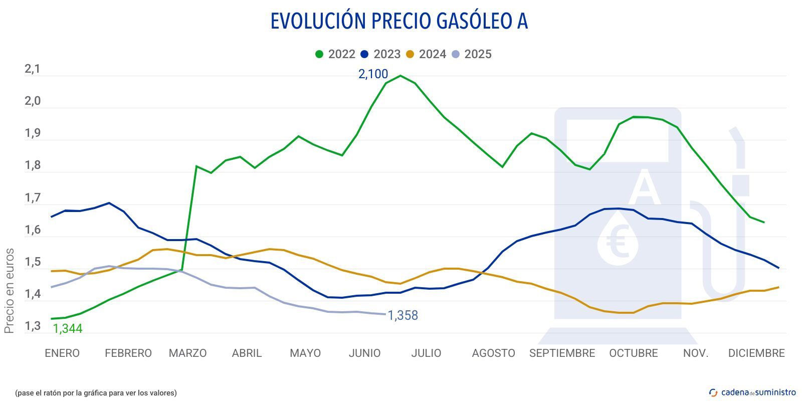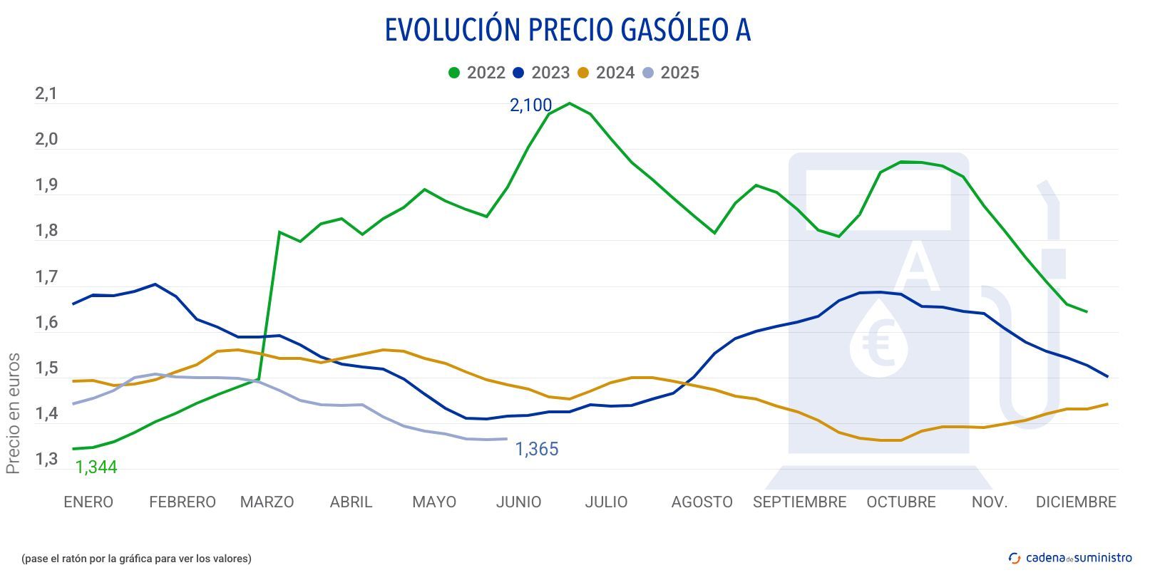 El precio del litro de gasóleo se sitúa en España en casi 1,412 euros de media, mientras que el de la gasolina ha llegado a los 1,484 euros en la última semana.