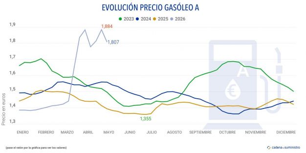 Cabe apuntar que el precio del barril de crudo Brent se sitúa en el entorno de los 104 dólares este jueves, lo que supone un claro incremento respecto a los 95 dólares de hace una semana y los 72 dólares que marcaba antes del inicio de la guerra.