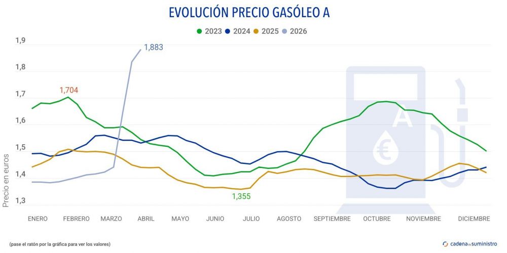El impacto de la guerra de Irán y el bloqueo del Estrecho de Ormuz han mantenido bajo presión el precio de los carburantes una semana más. En concreto, el precio del gasóleo se ha situado en los 1,883 euros de media en España entre el 17 y el 23 de marzo de 2026, un 2,55% por encima de los 1,836 del registro anterior, según recoge el último Boletín Petrolero de la Unión Europea.