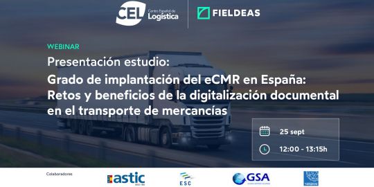 El Centro Español de Logística, CEL, y la tecnológica Fieldeas, en colaboración con la Asociación de Transporte Internacional por Carretera, Transprime Spanish Shippers’ Council, European Shippers’ Council y Global Shippers’ Alliance, han impulsado un estudio sobre el 'Grado de Implantación del eCMR en España: Retos y beneficios de la digitalización documental en el transporte de mercancías'.