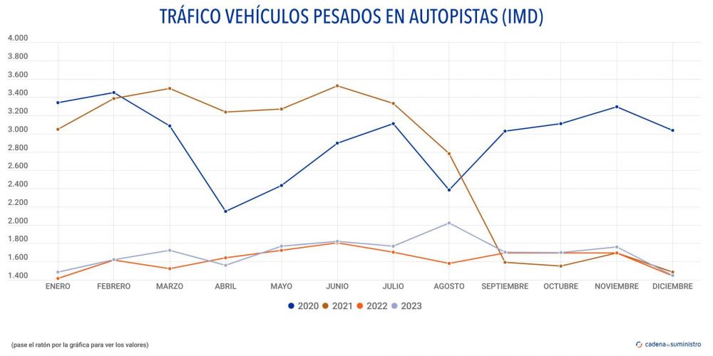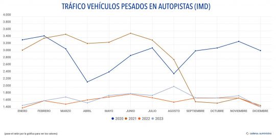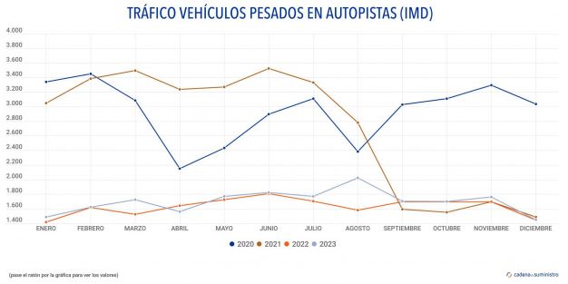 En este mismo sentido, durante el último mes de 2023 se registró en las carreteras de pago del país un total de 64 millones de vehículos pesados kilómetro, un 1,59% más que en el mismo período de 2022.