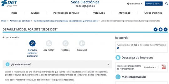 La Dirección General de Tráfico ya tiene habilitada, desde este lunes, 3 de marzo, la plataforma telemática para consultar la vigencia de los permisos de conducir de los conductores profesionales.