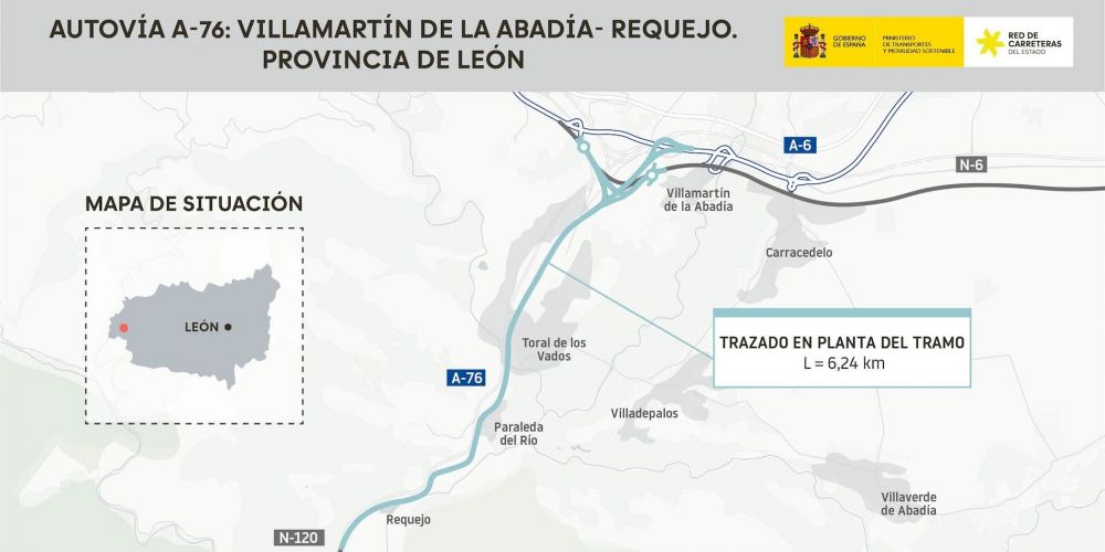 El Ministerio de Transportes y Movilidad Sostenible ha aprobado definitivamente el proyecto de construcción del primer tramo de la autovía A-76 entre Villamartín de la Abadía y Requejo, en la provincia de León.