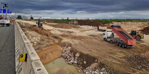 En la vía de alta capacidad más afectada, la A-7, en la que la avenida de agua se llevó un viaducto crítico a la altura de Quart de Poblet, cerca de su cruce con la A-3, el Ministerio trabaja a tres turnos con el objetivo de que esté disponible el desvío provisional de tres carriles de la autovía, lo que permitiría recuperar, con limitaciones de velocidad, la conexión con la A-3 en el by-pass de Valencia.