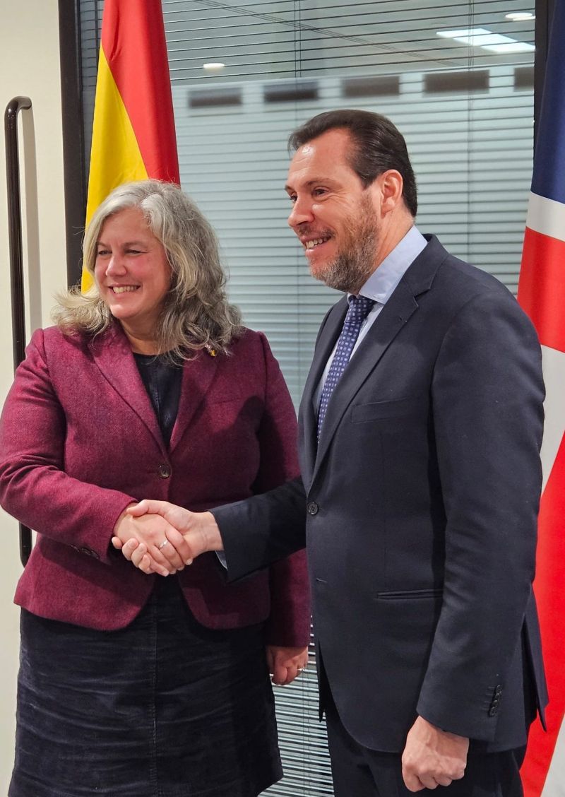 El ministro de Transportes y Movilidad Sostenible, Óscar Puente, se ha reunido en Londres con la ministra de Transportes de Reino Unido, Heidi Alexander, para abordar asuntos de interés común en el ámbito del transporte y la movilidad, como la importancia de avanzar en la descarbonización y reforzar la conectividad.