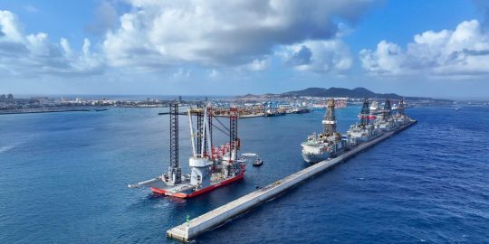 El puerto de Las Palmas ha recibido esta semana al 'Wind Peak', el mayor buque de instalación eólica marina del mundo, que hace escala en el enclave canario procedente de corea para abastecerse de combustible, repuestos, víveres y hacer cambio de tripulación, entre otros servicios logísticos, suministrados por su consignatario Canaship.