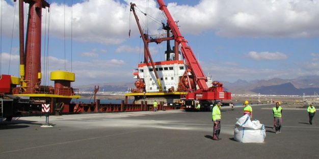 Tras ejecutar un vial de acceso para transportes especiales en el puerto de Arinaga adaptado para la descarga de piezas de aerogeneradores se ha detectado que la zona de depósito se encuentra a diferente nivel del vial que da acceso a la rada, por lo que los vehículos deben acceder a la zona a través de una rampa de tierra que salva el desnivel, complicando la realización de la maniobra.