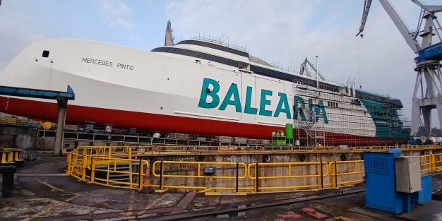 Baleària avanza a buen ritmo en la construcción de su tercer fast ferry propulsado por gas natural, el "Mercedes Pinto", que tiene previsto botar el 19 de septiembre en los Astilleros Armón de Gijón.