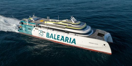 Balearia incorpora a su flota el innovador 'Margarita Salas', el segundo fast ferry del mundo con motores duales a gas, que ha sido construido en los astilleros Armon de Gijón.