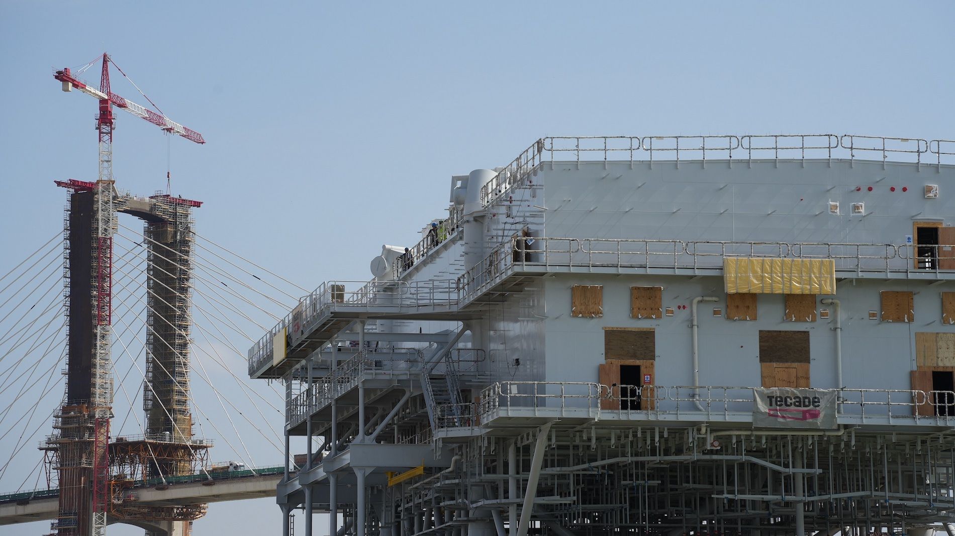 La infraestructura tiene unas dimensiones de 25 metros de altura y 65 metros de longitud y se dirige al puerto danés de Aalborg, donde se efectuará la instalación final de los equipos.