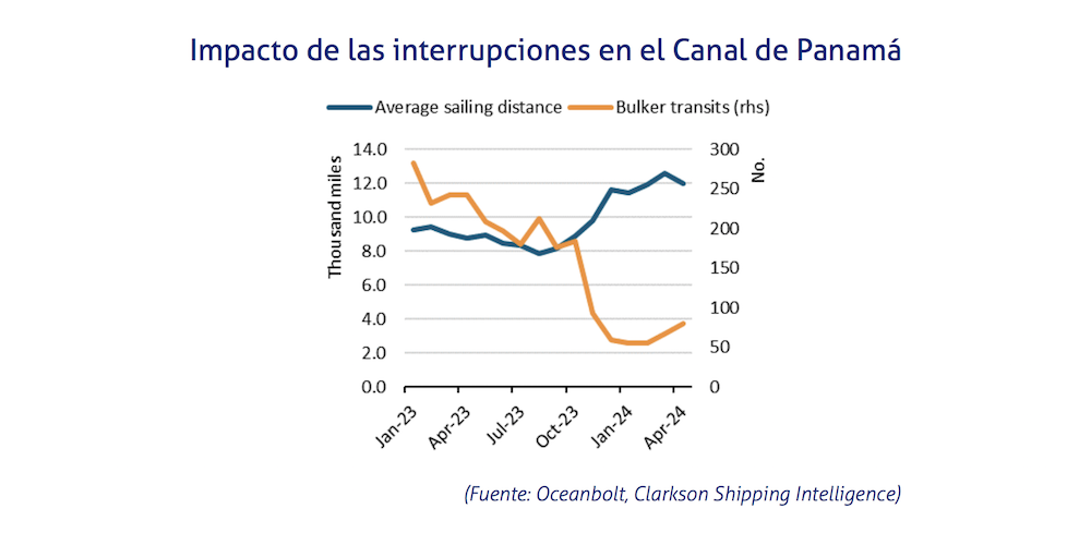 Las límitaciones en los tránsitos diarios en el Canal de Panamá han afectado significativamente al mercado de los graneleros, con una reducción de los tránsitos del 74% interanual entre enero y abril de 2024.