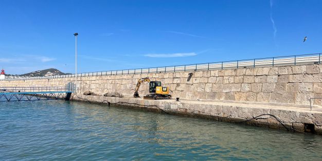 La Autoridad Portuaria de Baleares está realizando trabajos de acondicionamiento del dique de abrigo del puerto de Ibiza para la ubicación de embarcaciones en situación de contingencia. La fecha prevista para la finalización de los trabajos es a mediados de julio.