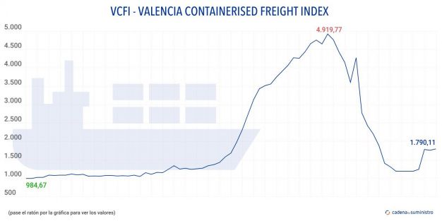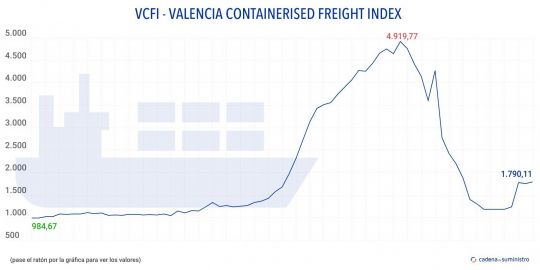 Por otro lado, en el área del Lejano Oriente se ha producido un descenso de un 9,68%, con lo que el índice queda en 2.424,39 puntos, en un contexto de recuperación del tráfico de importaciones procedentes de Asia en el puerto de Valencia.