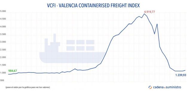 El Valencia Containerised Freight Index, VCFI, ha vuelto a crecer en noviembre por segundo mes consecutivo, tras haber acumulado catorce meses seguidos de descensos.