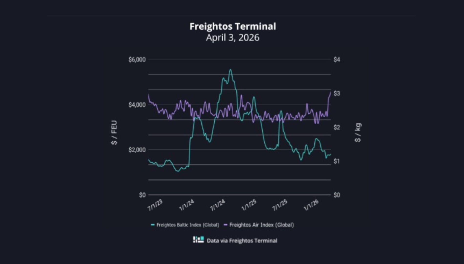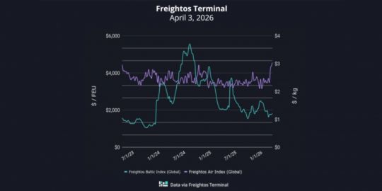 Los fletes siguen los primeros días de abril su tendencia al alza impulsados por los sobrecargos por incremento de los precios de los combustibles introducidos como consecuencia de la guerra de Irán.