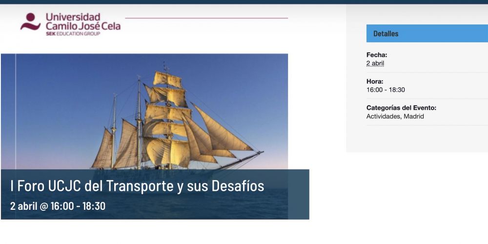 El 2 de abril de 2025, de 16 a 18,30 horas se celebrará el I Foro de Transporte que organiza el grado de Transporte y de Logística de la Universidad Camilo José Cela conjuntamente con la Real Liga Naval Española y el Colegio de la Abogacía de Madrid.