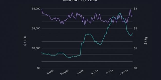 Así pues, el último análisis de Freightos estima que las tarifas en los servicios desde China a la costa oeste de los Estados Unidos han retrocedido en un 4% la última semana, mientras que los que llegan a la fachada este del país han crecido en un 5%.