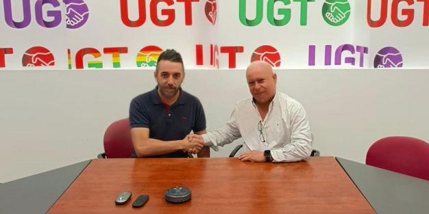 Manuel Barros, presidente de la Asociación de Medios Portuarios, y Manuel Navarro, secretario general de UGT de Canarias, han firmado un convenio para colaborar en el proyecto del Servicio de Información, Valoración y Orientación Portuario, y ampliar esta colaboración a otros proyectos, así como derivaciones mutuas de usuarios de la UGT y el SIVO Portuario.