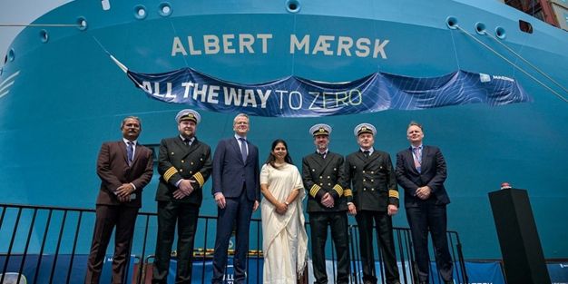 Maersk ha celebrado a finales del pasado mes de febrero en las instalaciones de APM Terminals Mumbai la ceremonia de bautizo del 'Albert Maersk', el undécimo portacontenedores dual de su flota que puede funcionar con metanol.