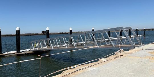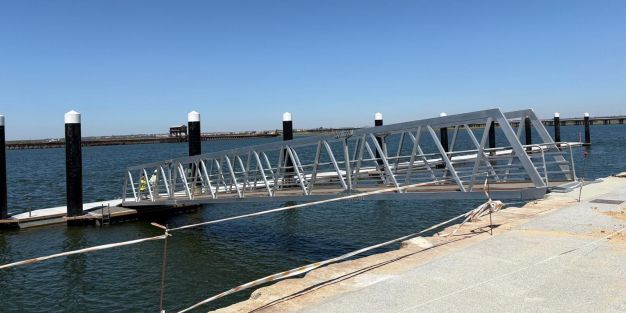 Las obras comprenden la ejecución de un pantalán flotante de hormigón pilotado que arranca a un metro desde el último escalón de las escaleras existentes de subida al muelle. La infraestructura está formada por ocho módulos de hormigón flotantes de 12x3 metros y otro pantalán flotante de aluminio intermedio de 6x3 metros, que servirá de apoyo a la pasarela y será la transición al acceso del pantalán flotante de atraque.