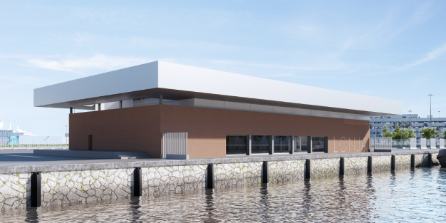 Aunque esté ubicado en el lado portuario de la dársena pesquera, se ha tenido en cuenta su proximidad al Lago Marítimo, de forma que la composición permite que el edificio se constituya como un elemento de referencia dentro de la interfaz puerto-ciudad, facilitando su visibilidad desde distintos puntos, en especial desde el muelle de Ribera y desde la parte alta de la ciudad.